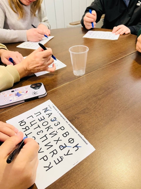 Участники активно включились в работу, выполняя увлекательные задания: искали и зачёркивали неверно написанные буквы, составляли «лесенки» из слов по их значениям и старались точно воспроизвести предложенный узор.