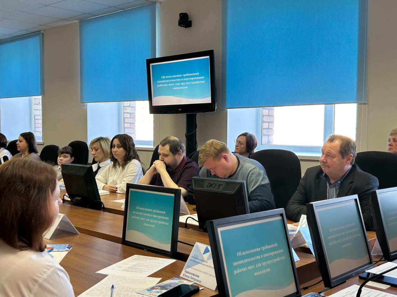 От представителей Центра Занятости населения были заслушаны презентации на темы : Исполнения требований законодательства рабочих мест для трудоустройства инвалидов, дополнительные мероприятия по содействию занятости граждан, имеющих инвалидность.